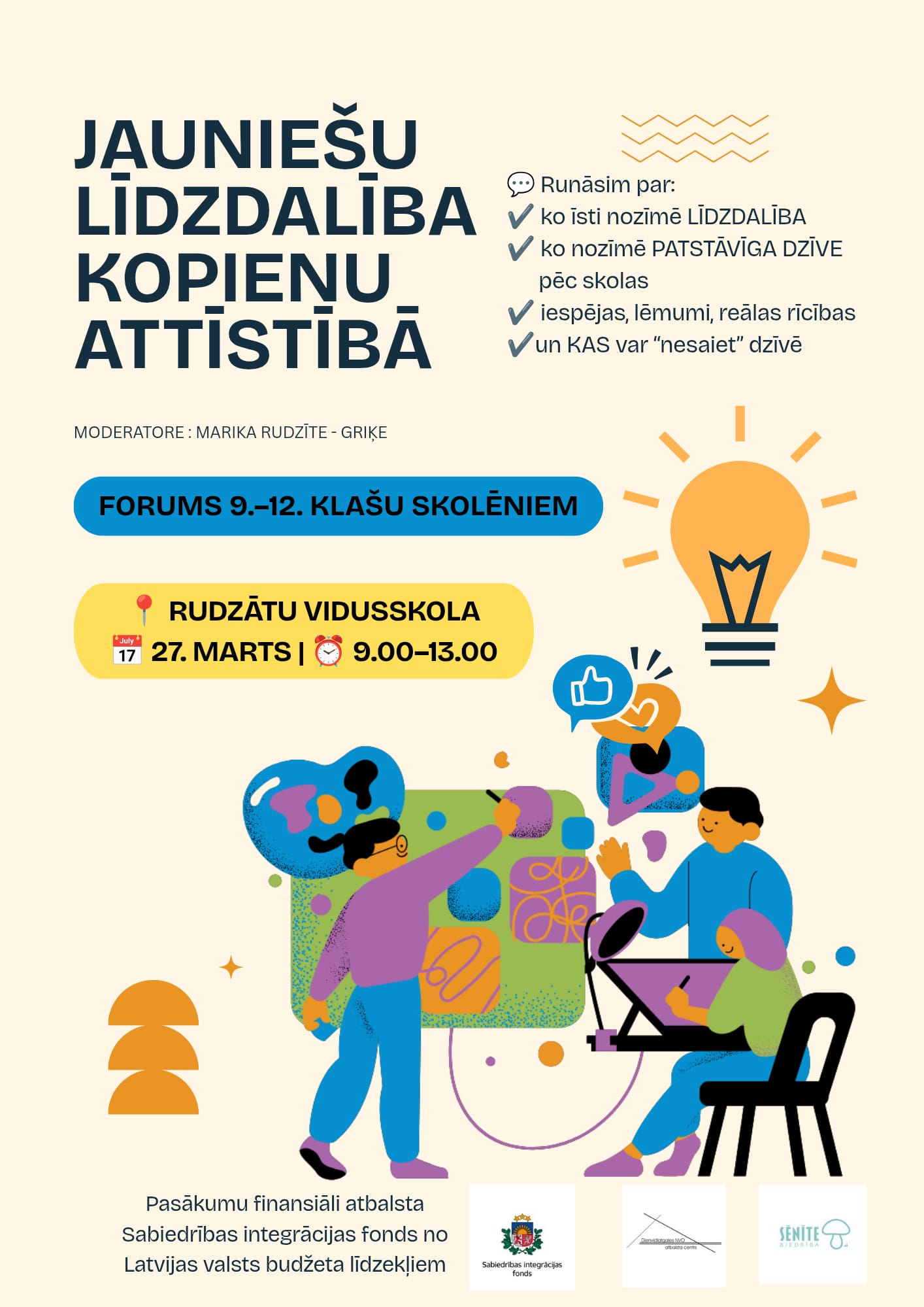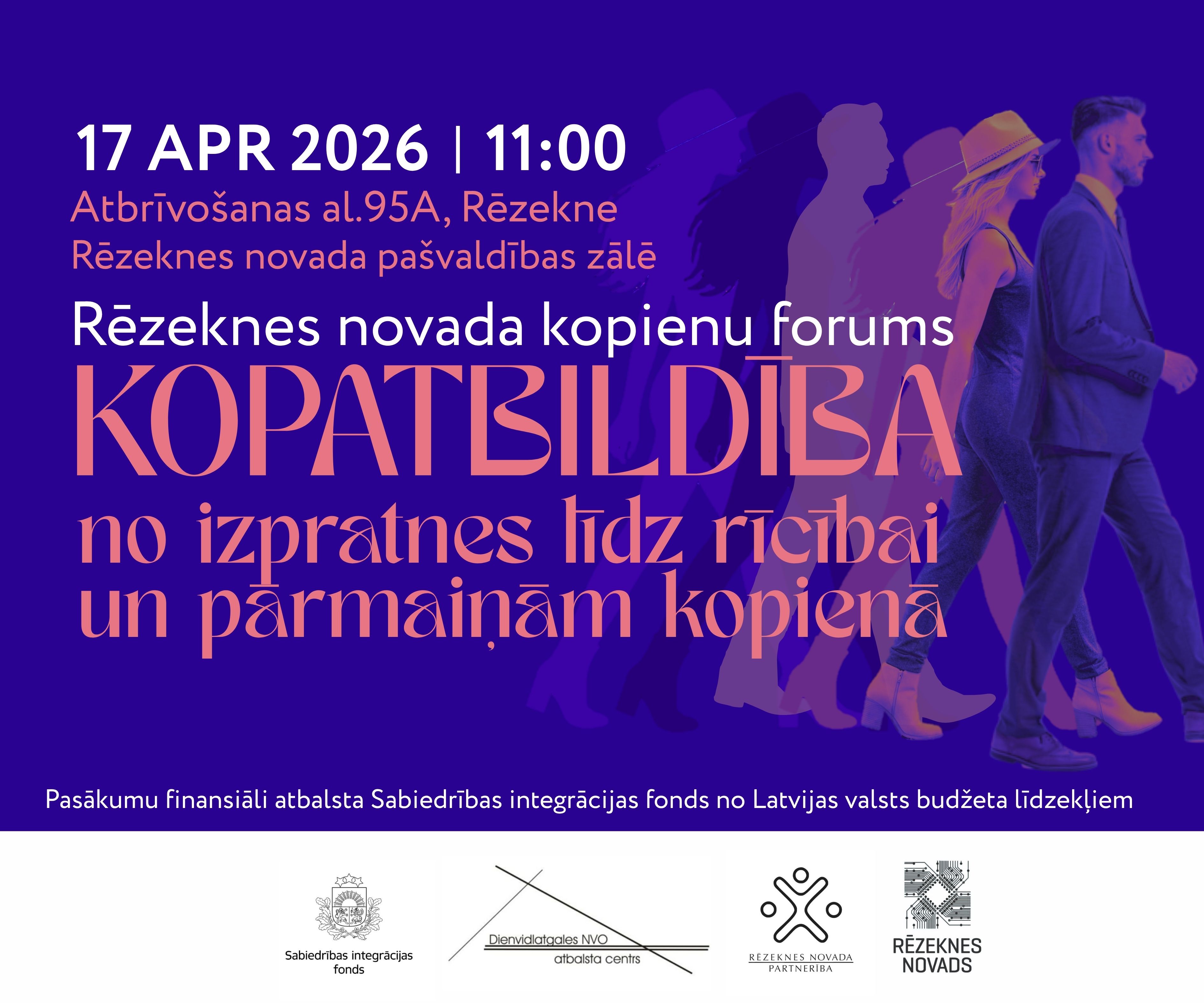 Biedrības “Dienvidlatgales NVO atbalsta centrs” un “Rēzeknes novada partnerība” sadarbībā ar Rēzeknes novada pašvaldību organizē kopienas forumu Rēzeknes novada iedzīvotājiem. Foruma moderatore: Lienīte Litavniece.