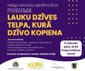 Piektdien, 6. februārī, notika Preiļu novada iedzīvotāju forums "LAUKU DZĪVES TELPA, KURĀ DZĪVO KOPIENA", forumu rīko biedrība "Preiļu - Līvānu novadu partnerība "Kūpā"" sadarbībā ar Preiļu novada pašvaldību un biedrību "Dienvidlatgales NVO atbalsta centrs".