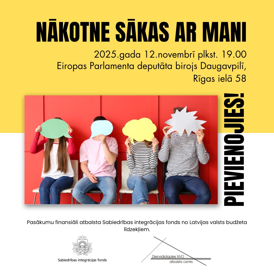 2025. gada 24. septembrī plkst. 15.00 Daugavpilī, Rīgas ielā 58, Dienvidlatgales NVO atbalsta centrs (DNVOAC) sadarbībā ar Daugavpils valstspilsētas pašvaldību, rīko semināru / diskusiju "NVO spējas un iespējas" par Daugavpils pašvaldības dažādo atbalsta instrumentu pieejamību NVO sektoram, tai skaitā pilsētas NVO atbalsta fonda projektu īstenošanas konkursa turpmāko darbību, un savstarpējo sadarbību. Pasākuma sākumā Kultūras ministrijas ES fondu departamenta ES kultūras kontrolpunkta nodaļas speciālistes dalībniekiem pastāstīs par iespējām piedalīties projektu veidošanā un realizācijā ES projektu programmās "Pilsoņi, vienlīdzība, tiesības un vērtības" („Citizens, Equality, Rights and Values programme" jeb CERV) un "Radošā Eiropa". Piesaki savu dalību pasākumā, aizpildot pieteikuma anketu šeit: